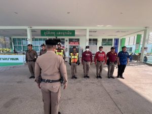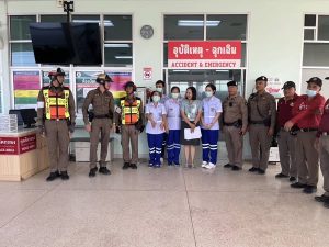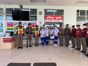 เจ้าหน้าที่ตำรวจสถานีตำรวจภูธรบางแพ พร้อมชุดเผชิญเหตุสาธารณภัย เตรียมตวมพร้อม ณ รพ.บางแพ รองรับเหตุภัยพิบัติแผ่นดินไหว