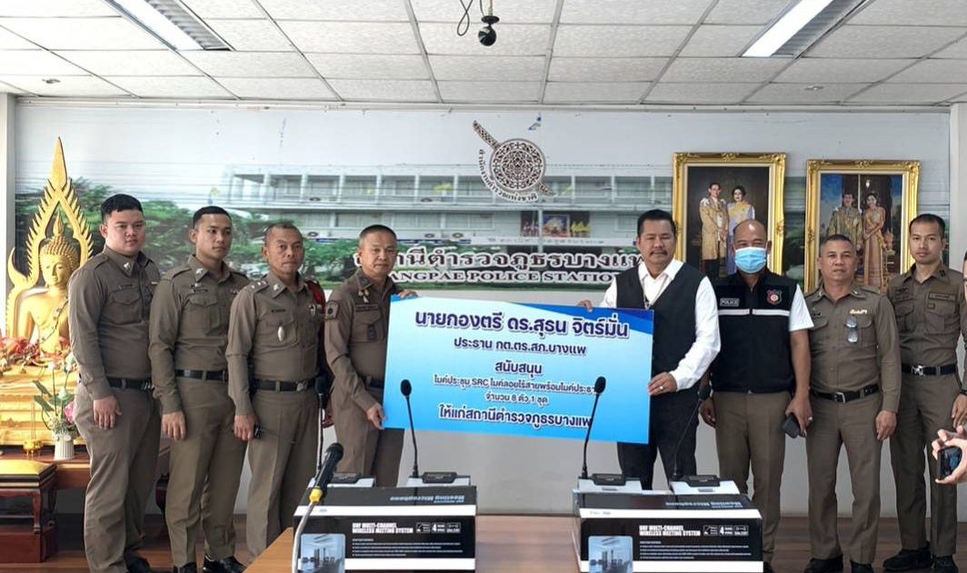 วันที่ 12 ก.พ. 67 นายกองตรีดร.สุทน จิตต์มั่น คณะกรรมการกต.ตร.สภ.บางแพ ได้ให้การสนับสนุนไมโครโฟน สำหรับใช้ในการประชุมให้กับ สภ.บางแพ จำนวน 8 ตัว ณห้องประชุมชั้น 3 ศปก.สภ.บางแพ โดยมี พ.ต.อ.สมมาตร จันทรัตน์ ผกก.สภ.บางแพ พร้อมด้วยข้าราชการตำรวจสังกัด สภ.บางแพ เป็นผู้รับมอบ