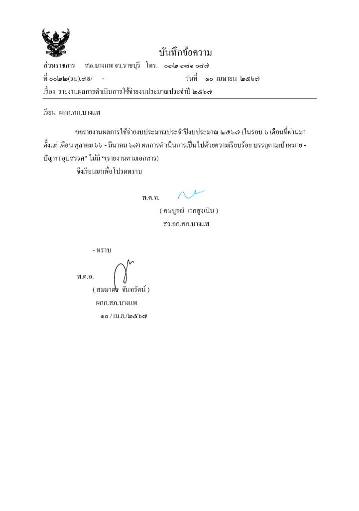 ดาวน์โหลดรายงานใช้จ่ายงบประมาณ 6 เดือนแรก